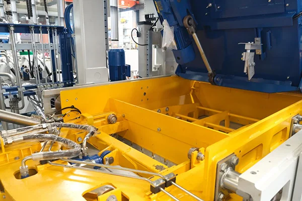 6Hidraulikus automatikus reteszelő funkció a Face Mix egységhez A főgép és a ZN1200-2C homlokkeverő egysége közötti kapcsolat egy fejlett hidraulikus automatikus reteszelő rendszeren keresztül valósul meg. Hidraulikus hengerek hajtják meg a reteszelő alkatrészeket, hogy szorosan rögzítsék az arckeverő egységet a főgéphez. Amikor a face mix egységet le kell választani, a rendszer kioldja a zárat, és egy hajtóműves motor hajtja a face mix egységet a sínek mentén.