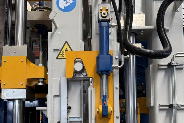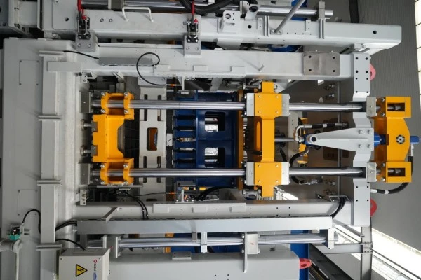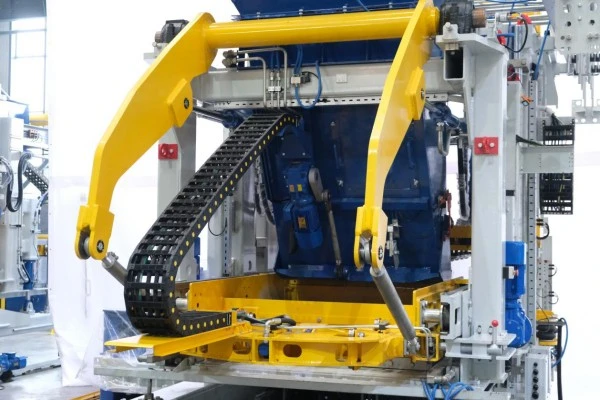 9Nyomja meg a Fejrögzítő eszközt Ez a mechanikus reteszelőmechanizmus nagy szilárdságú reteszelőblokkokból, ék alakú présfejből és kettős működésű hidraulikus hengerekből áll. A kiszerelés során a hengerek meghajtják a reteszelőblokkokat, hogy sugárirányban rögzítsék a présfejet, mechanikus holtpontot képezve. Ezután a formát állandó nyomás alatt kiengedik, hatékonyan kiküszöbölve a rugalmas visszapattanást és a mikromozgást – biztosítva az éles téglaéleket, a sima felületeket és a jelentősen jobb termékminősítési arányt.
