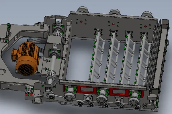 4Felfüggesztett etetőrendszer A felfüggesztett adagolórendszer moduláris felépítésű, amely magában foglalja az adagolódobozt, a kaparót, a szabotázskefét és az ívtörő egységet. Mind a face mix, mind a base mix etetődobozok az etetőkeretre vannak felszerelve, ami lehetővé teszi a gyors cserét és az optimális etetési teljesítményt.